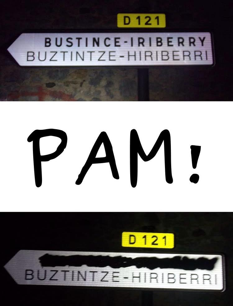 Xiberoako, Nafarroa Behereko eta Lapurdiko hainbat herrien sartzeetan diren herrien izenen frantses idazkerak ezabatu ditu Euskal Herrian Euskaraz-ek. Frantsestuak izatea inperialistatzat jotzen dute.