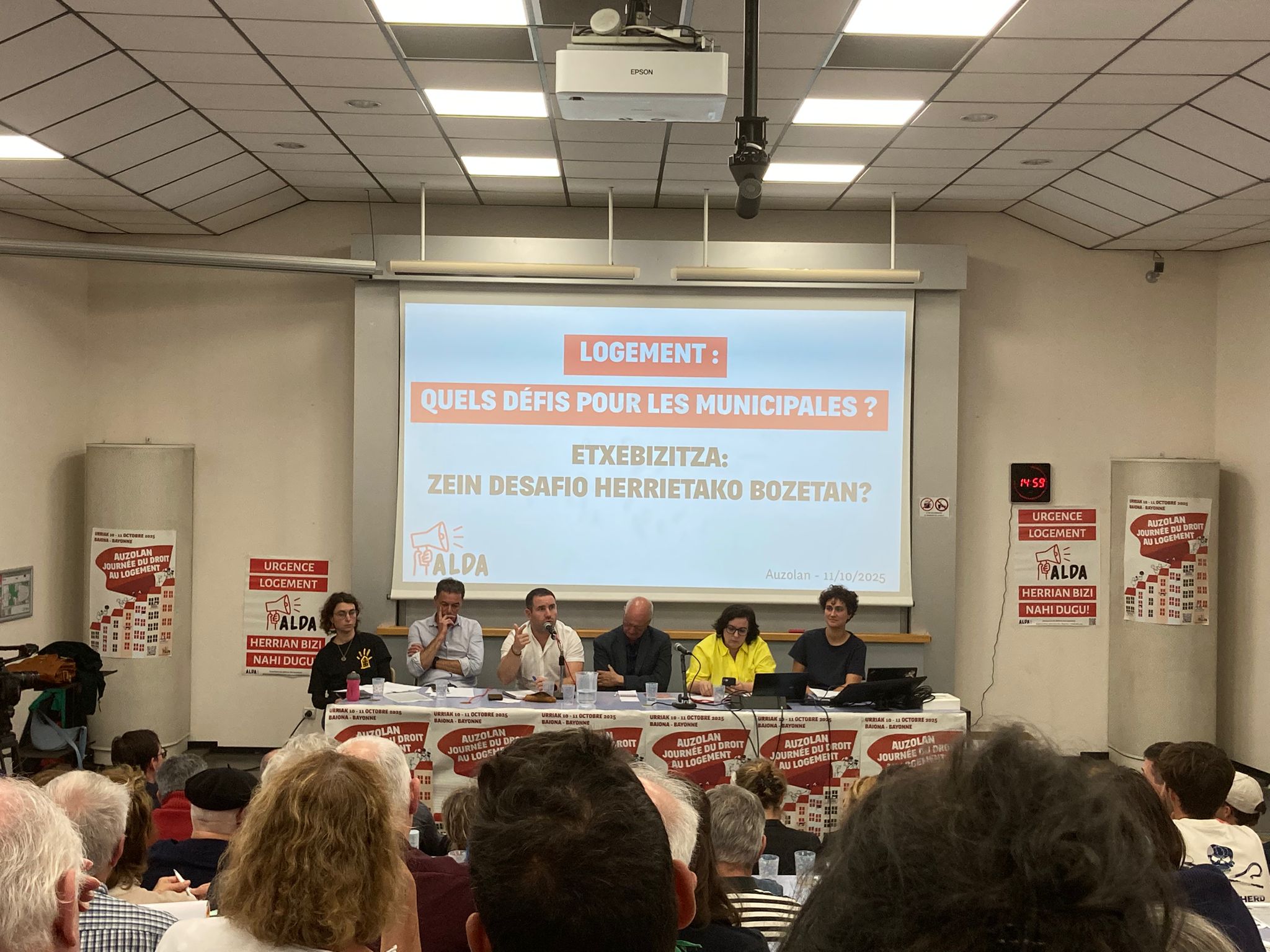 Emmanuelle Cosse Frantziako ministro ohia eta Union Sociale de l'Habitat erakundeko presidentea, Peio Dufau diputatua, Marie Huiban Droit Au Logement erakundeko kidea, Christophe Robert etxebizitza fundazioaren ordezkari nagusia (Abbé Pierre fundazio ohia), Gaëlle Vincens Herrian Bizi plataformako kidea mintzatu dira, Jean Luc Berho Solihako presidenteak animatu duen hitzaldian.