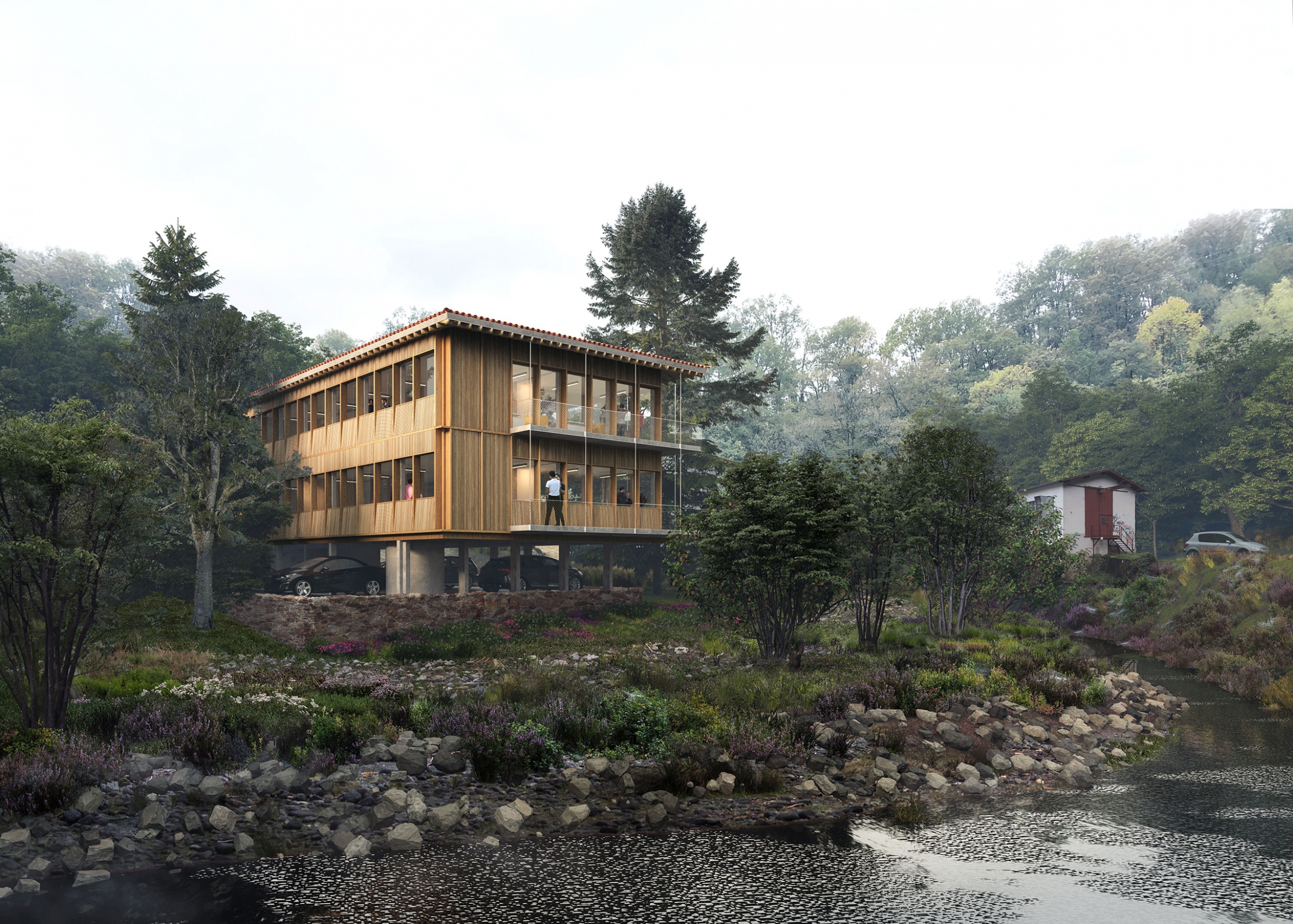 Lehen harria pausaturik, lanak 2026ko udan bururatzea espero dute. Ideia da ekonomia bultzatuz, Aldudeko balearen biziaraztea. AIBA Aldudeko Ibarra Beti Aitzina elkarte horrek ditu bulegoak eta gelak kudeatuko. 3,4 milioi euroko proiektua da orotara. Obrak nahiko lituzkete bururatu 2026ko udarako. V2S arkitektura bulegoak garatu du eraikin berriaren proiektua.